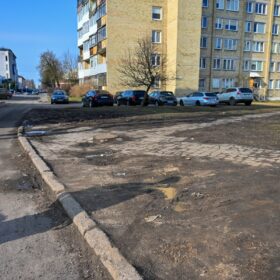 Išvažinėta veja daugiabučių kieme FOTO: P. Židonio nuotr. Vieno Panevėžio daugiabučio gyventojams baigėsi kantrybė iš pievos vaikyti ją dramblojančių automobilių...