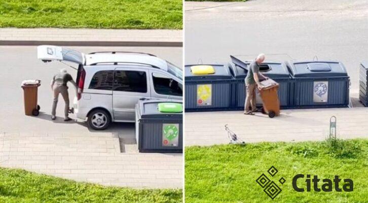 Socialiniuose tinkluose audrą sukėlęs vaizdo įrašas, kuriame matyti, kaip vyras iš savo asmeninio konteinerio verčia...