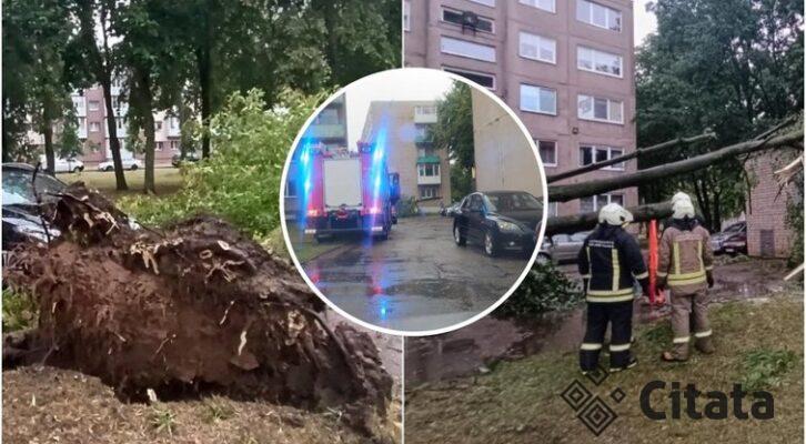 Ketvirtadienio popietę dalyje Lietuvos lijo, griaudėjo perkūnija, sustiprėjo vėjas. Gelbėtojai gavo pranešimų apie nuvirtusius medžius....