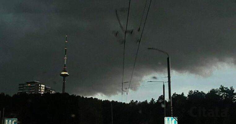 Per Lietuvą slinkusi audra atkeliavo į Vilnių. Tamsūs lietaus debesys apgaubė sostinę, gatves skalauja liūtis....