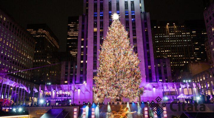 Niujorkas įžiebė, turbūt, vieną įspūdingiausių kalėdinių eglių pasaulyje – Rokfelerių eglę – be kurios dalis...