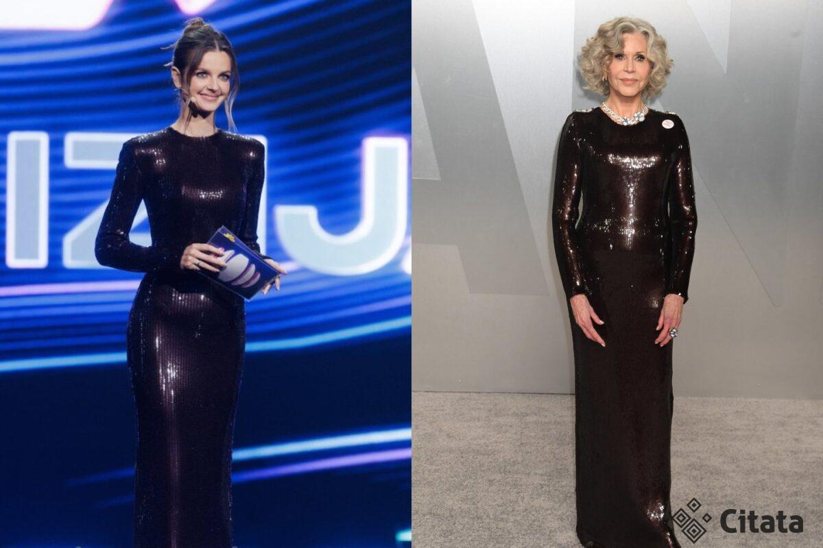 Nuotraukose tiek J. Fonda, tiek G. Martirosian vilkėjo ilgas bordo spalvos sukneles, puoštas žvyneliais.
