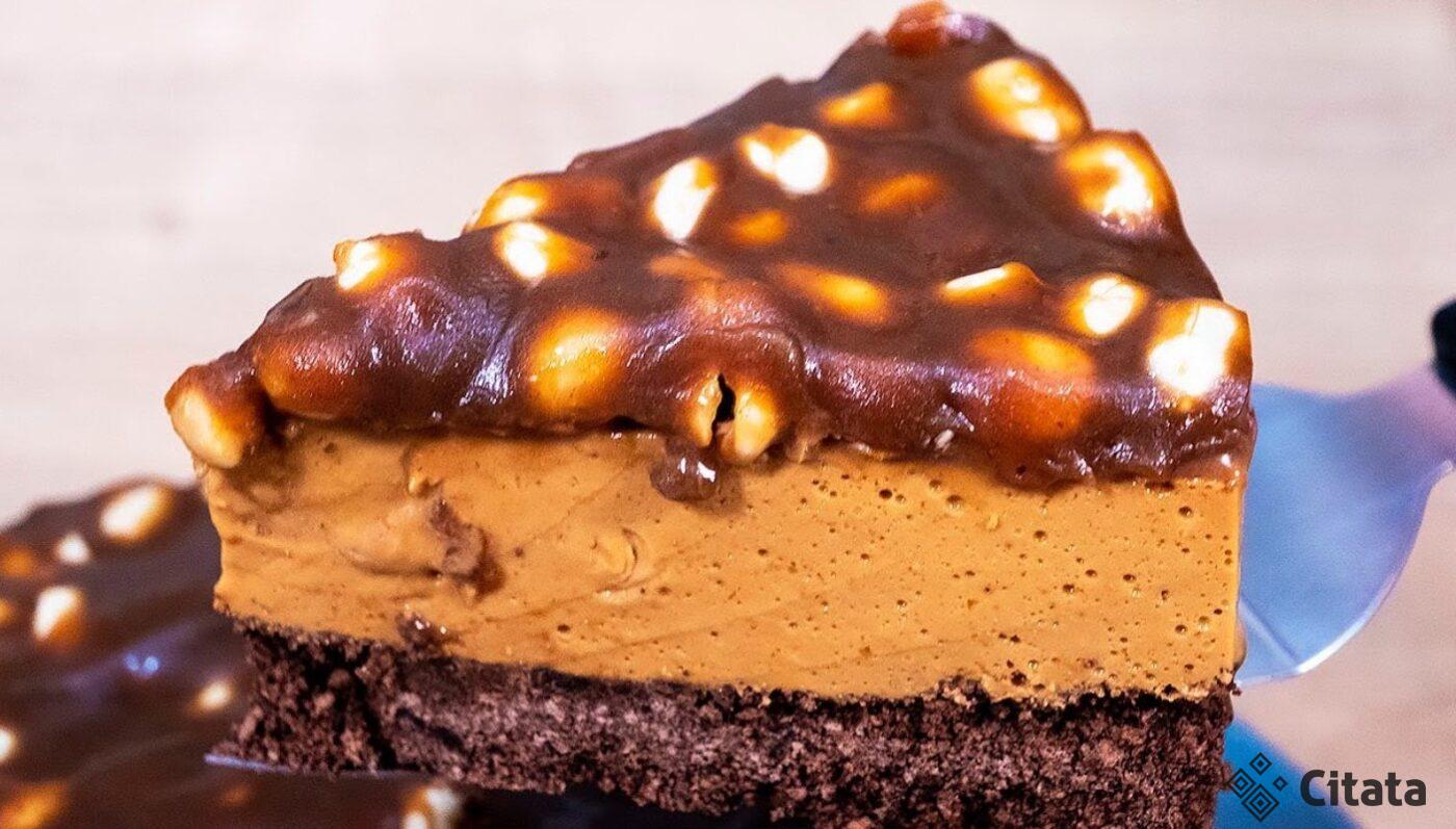 Toks skanus „Snickers” sūrio pyragas ruošiamas nekepant, tačiau jis gaunasi labai purus ir švelnus. Riešutų pyragą galima paruošti ir kaip šventinį desertą – jis atrodo labai gražiai.