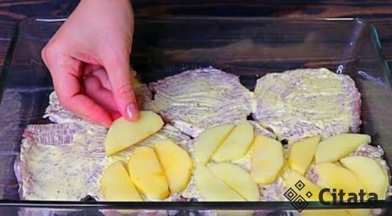 Kepimo formą ištepkite augaliniu aliejumi ir sudėkite mėsą