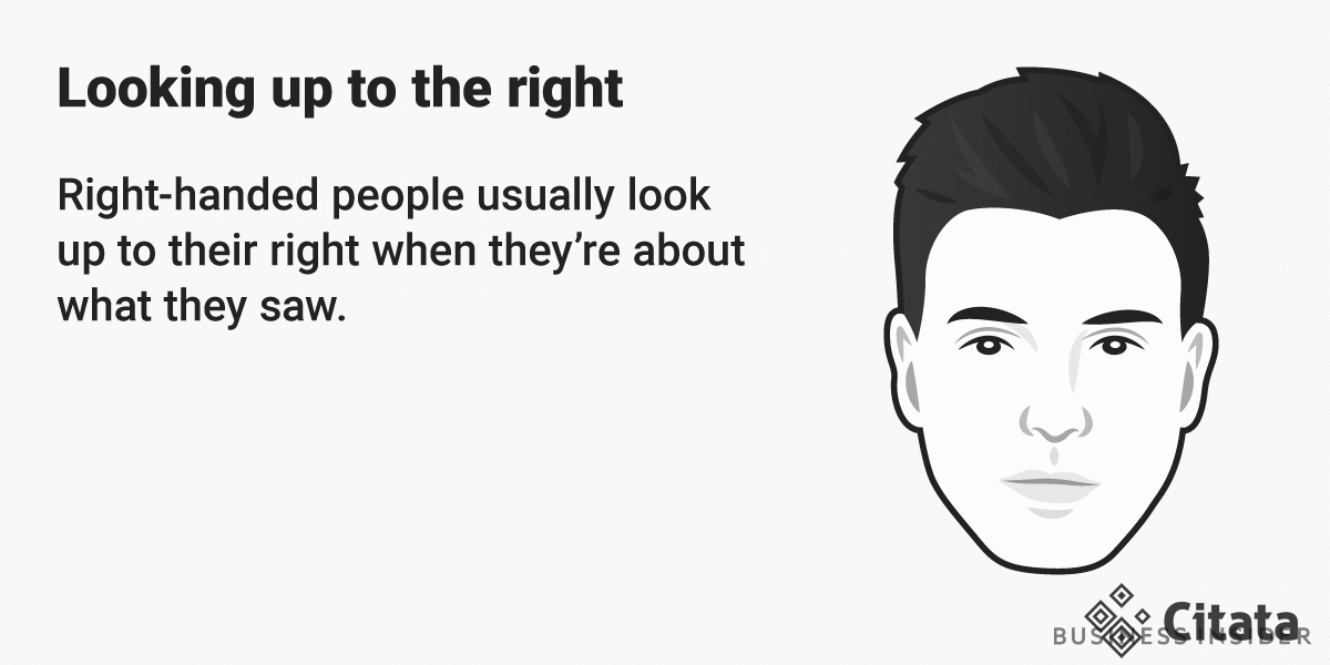 „Kai užduodate klausimą paprastam dešiniarankiui apie ką nors, ką jis galėjo pamatyti, tuomet, jei jo žvilgsnis nukreiptas į viršutinį kairįjį kampą, jis iš tikrųjų remiasi savo atmintimi, kad prisimintų šį įvykį, – sakė Butonas. – Tačiau jei žmogus pradeda žiūrėti į viršutinį dešinįjį kampą, vadinasi, tuo metu jis atsigręžia į savo vaizduotę, kad sugalvotų atsakymą.“