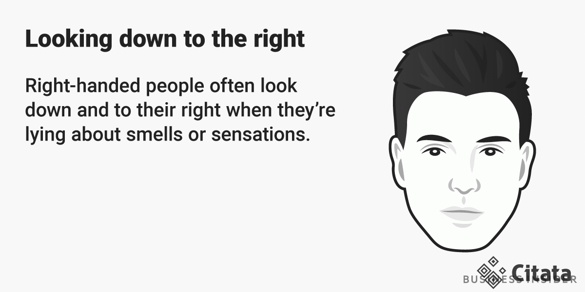 „Žmogaus akys nukryps į apatinį kairįjį kampą, jei jis planuoja papasakoti apie savo fizinius prisiminimus arba apie įsimintą kvapą ar pojūtį, pavyzdžiui, skersvėjo ar siaubingo dvoko, – paaiškino Butonas. – Tačiau jo akys nukryps į apatinį dešinįjį kampą, jei asmuo ketina jums meluoti.“