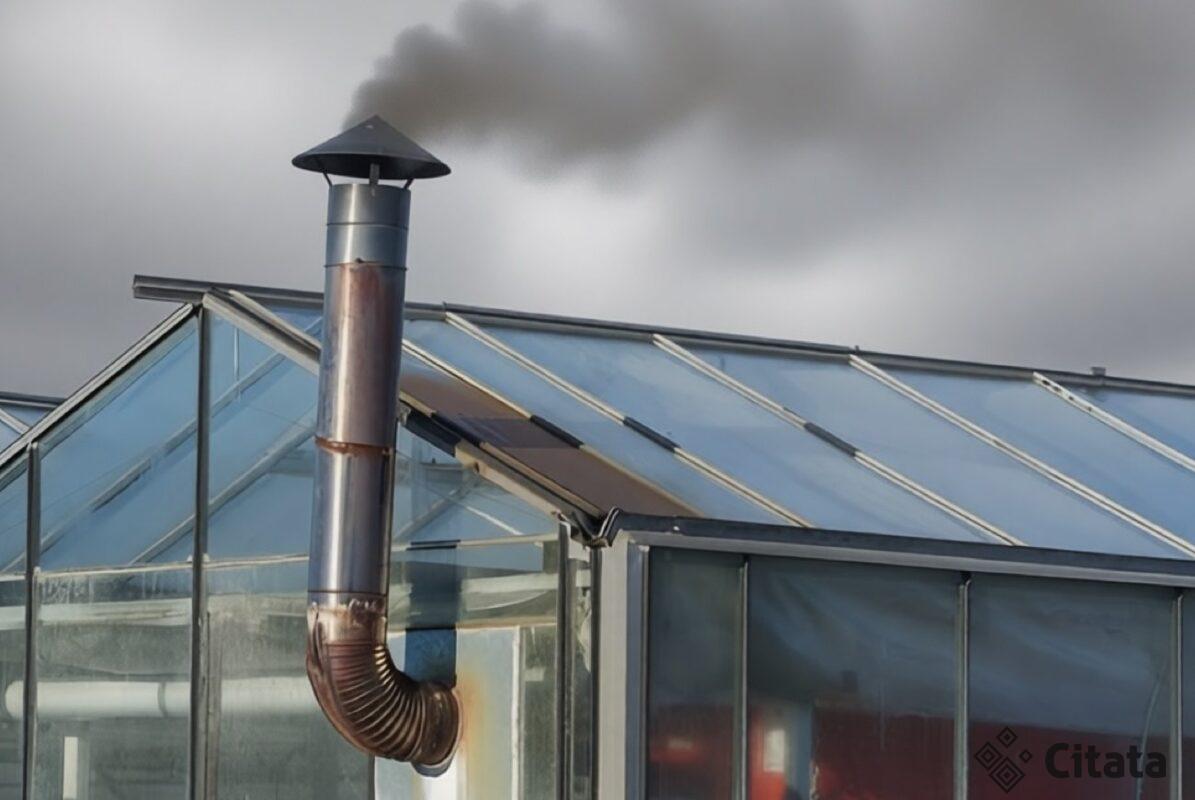 Ilgas kaminas, einantis per visą šiltnamį, iš dalies išsprendžia nelygumų problemą. Karštos dujos, eidamos per kaminą, išskiria šilumą visu savo keliu, pagerindamos temperatūros pasiskirstymą. Tačiau tai nepašalina pagrindinio trūkumo – trumpo įkaitimo ciklo ir poreikio nuolat stebėti pakurą.
