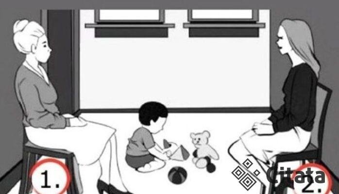 Kaip matote, paveikslėlyje pavaizduotos dvi moterys, kambaryje sėdinčios viena priešais kitą, su mažu berniuku, kuris...