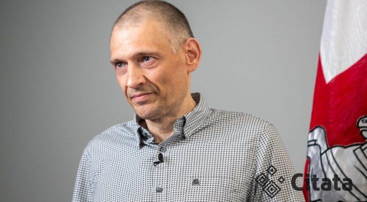 Sulysęs, sublogęs ir su ašaromis akyse – taip sekmadienį Vilniuje surengtoje spaudos konferencijoje atrodė Siarhijus...
