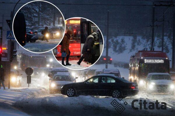 Visą dieną intensyviai besitęsiantis snygis paralyžiavo eismą Lietuvoje. Vilniuje seniai matytos spūstys, regionuose – sudėtingos eismo...