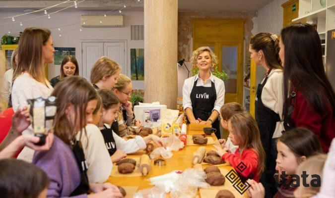 Kulinarijos studijoje „Beatos virtuvė“ surengtose kalėdinių meduolių kepimo ir dekoravimo dirbtuvėse desertų kultūros ambasadorė Liucina...