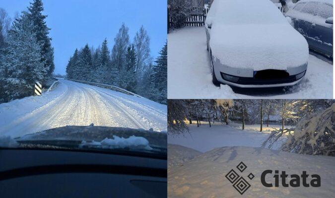 Šįkart sinoptikų perspėjimai, kad laukia gausesnė porcija sniego kone visoje šalyje išsipildė. Skaitytojai dalinasi vaizdais...
