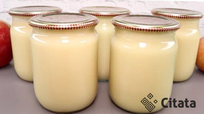 Švelni obuolių tyrė su kondensuotu pienu, kuri gali būti puikus desertas, pyrago plutos įmirkymas, obuolių...