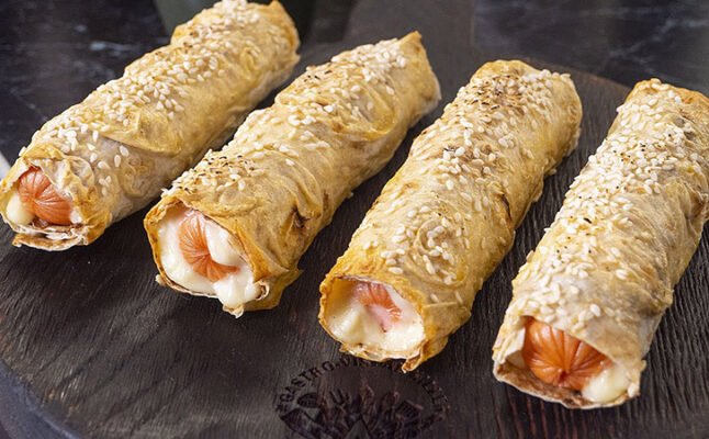 Ingredientai: plonas lavašas, dešrelės, sūris, sezamo sėklos, kiaušinis, prieskoniai pagal skonį Paruošimas: Lavašą supjaustykite juostelėmis....