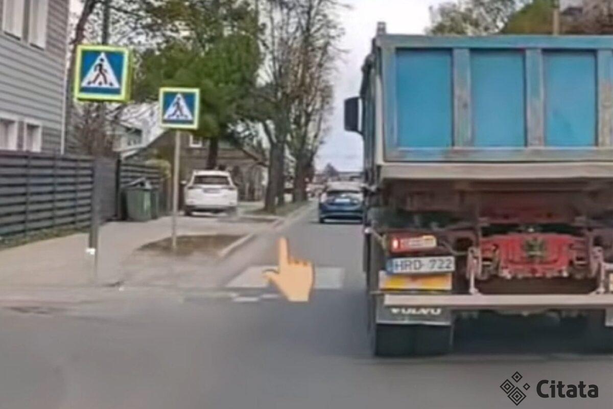 Skaitytojo atsiųstoje vaizdo medžiagoje galima matyti baltos spalvos visureigį, kuris važiuoti staiga pasileido per pėsčiųjų takelį, taip aplenkdamas važiuojamojoje kelio dalyje susidariusią spūstį.