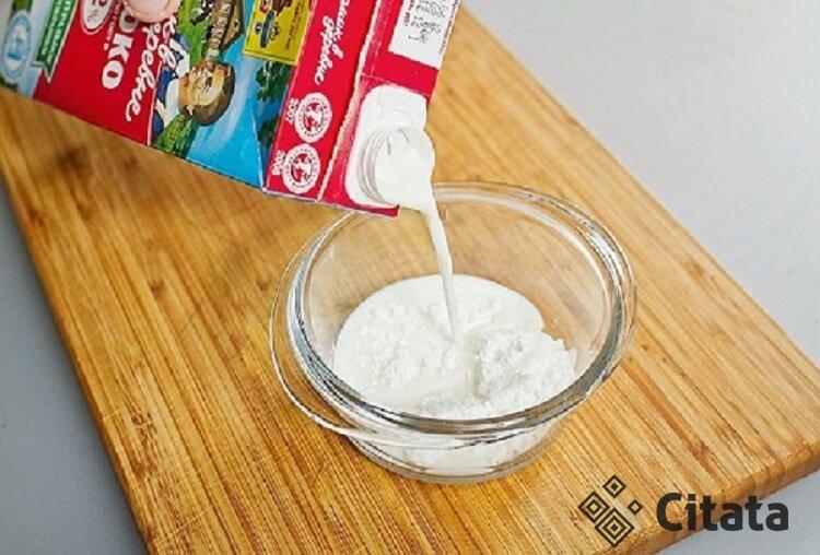 Šiai kaukei reikės šaukšto krakmolo, šaukštelio cikorijų ir druskos bei šiek tiek pieno. Visus ingredientus reikia sumaišyti. Kaukę reikia tepti ant iš anksto nuvalytos veido odos. Po 25 minučių ją nuplaukite ir patepkite maitinamuoju kremu.