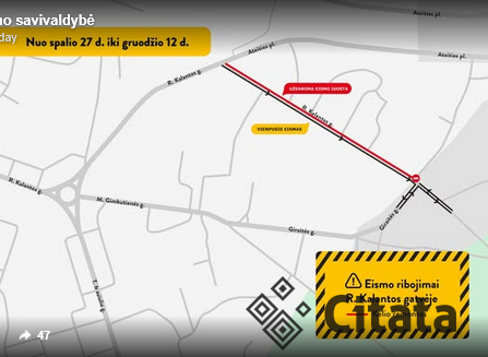 Pirmadienį, spalio 27-ąją, pradedami R. Kalantos gatvės kapitalinio remonto darbai. Juos atliekant vairuotojus pasitiks laikini eismo ribojimai.