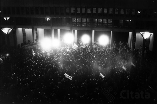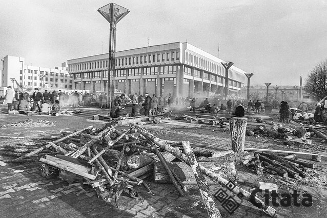 Prietema, stoviu prie virtuvės lango, ir staiga atsidaro laiptinių durys, iš visų laiptinių pasipila žmogeliai, užsimetę bet ką – įsispraudę į striukes, įsispyrę į kažkokius batus, bet traukia, bėga prie Spaudos rūmų.
