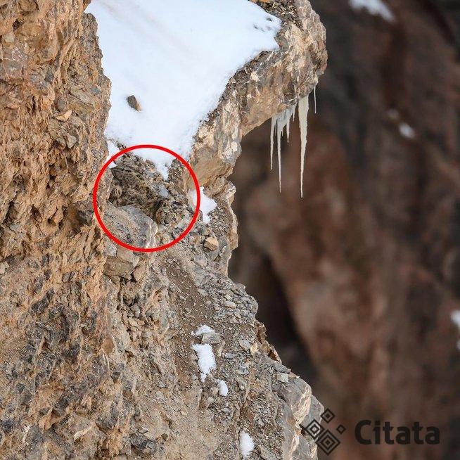 Patikėkite, leopardas šioje nuotraukoje tikrai yra. Tačiau sniego ir uolų fone jį sunku pastebėti. O galbūt jį jau pastebėjote?