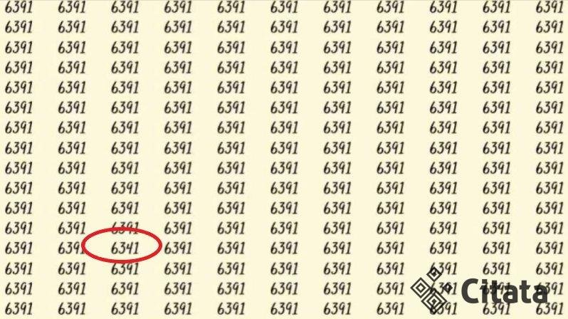 Jūsų užduotis – pastebėti kitokį pasislėpusį skaičių. Nustatykite laikmatį 10 sekundžių ir išbandykite savo jėgas, ar pavyks rasti skaičių 6341.