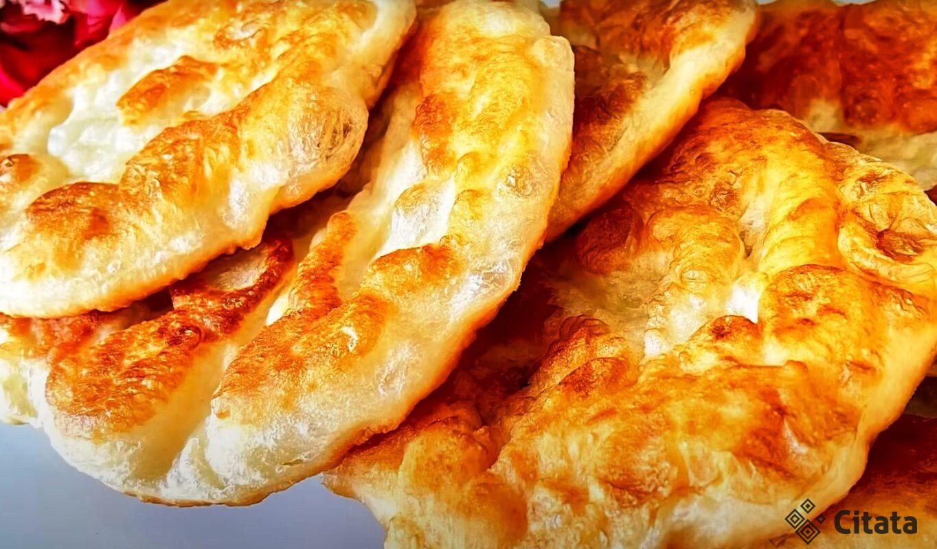 Kol gumulėliai kyla, keptuvėje įkaitinkite daug aliejaus. Rankomis iš kolobokų suformuokite beveik keptuvės skersmens plokštainį. Kepkite plokštainį aliejuje ant vidutinės ugnies, kol iš abiejų pusių taps auksinis.