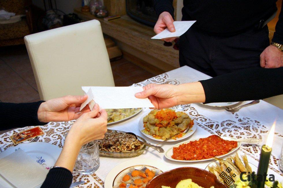 Pas mus virdavo koldūnus su džiovintais grybais ir aguonų įdaru, su aguonų įdaru patiekdavo su keptų orkaitėje obuolių padažu: labai skanu! Kas kepate savo duoną tai tikrai geriau ja dalintis, nei bažnytiniu naujadaru, jei esate labai religingi nueikite ir paprašykite, kad pašventintų jūsų keptą kepaliuką. Vaikams tikrai paliks gilai atsiminimuose, kaip per Kūčią dalinosi mamos ar močiutės kepta duona.