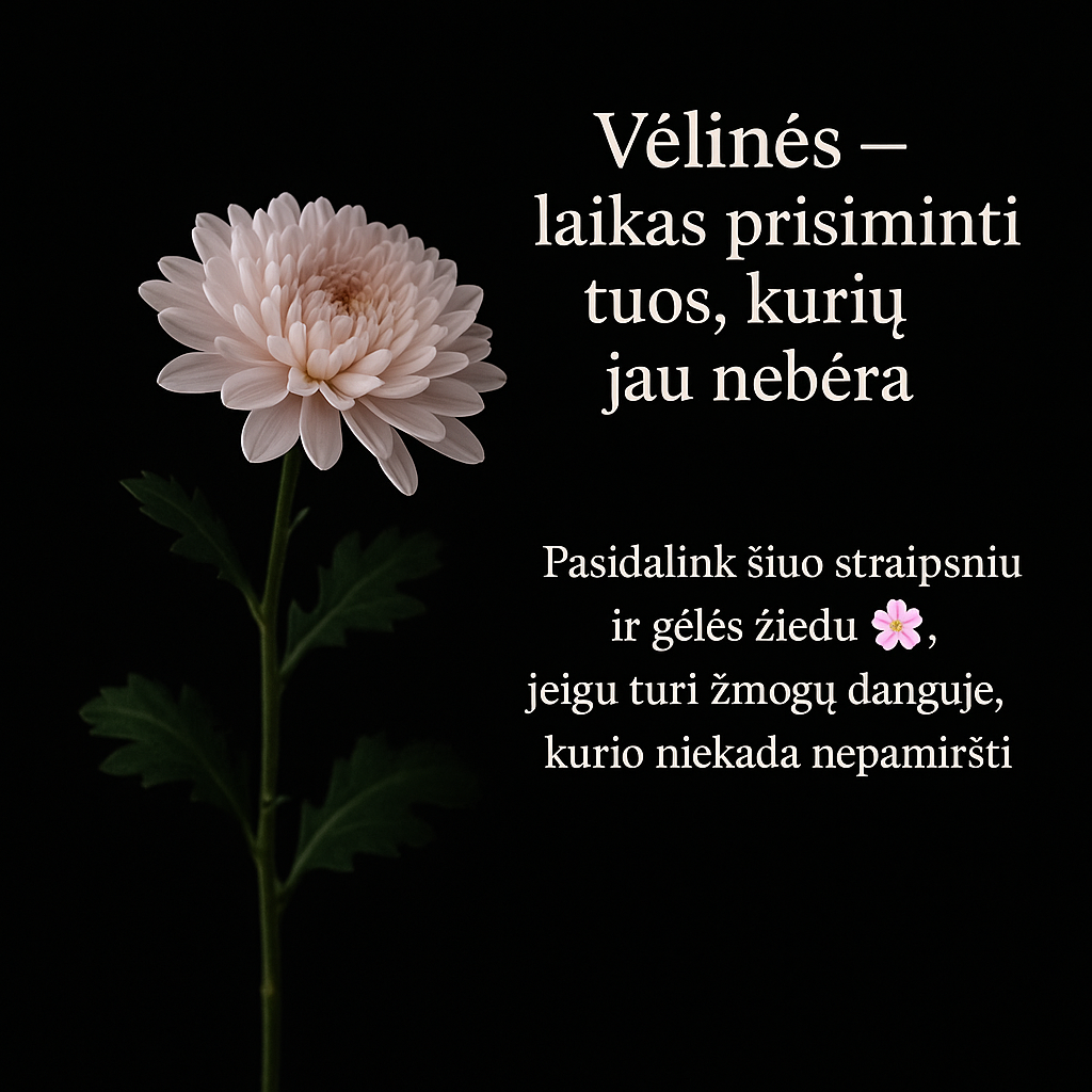 Vėlinės – tai metas, kai sustojame. Kai širdis kalba garsiau nei žodžiai. Kai net stipriausi prisimena ašarą, o tyliausi – šypsosi dangui. Nes kiekvienas turime žmogų, kuris iškeliavo, bet vis dar gyvena mumyse: jo balsas vis dar skamba, jo juokas kartais grįžta sapne, jo pėdsakai niekada neišnyksta iš širdies.