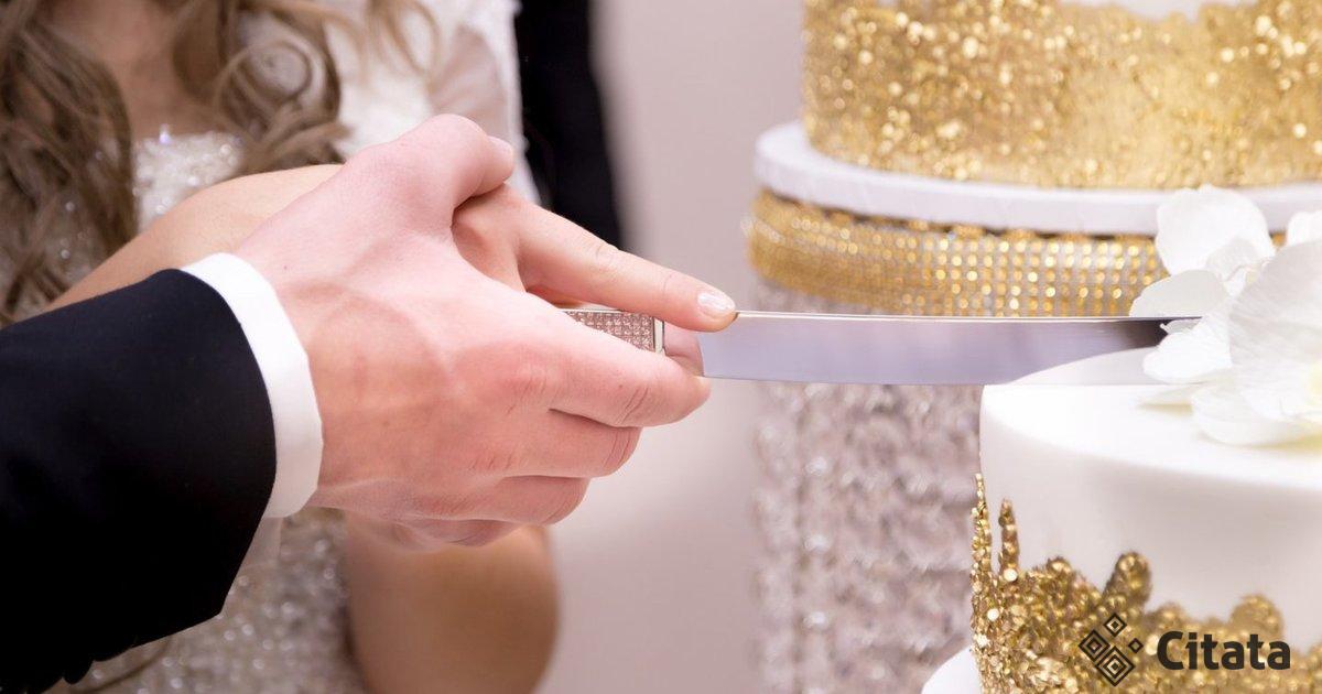 Iš ceremonijos vaizdo įrašų matyti, kaip aštuonių aukštų sietyno formos tortas lėtai leidžiasi nuo prabangaus penkių žvaigždučių viešbučio, kuriame vyko vestuvės, lubų.