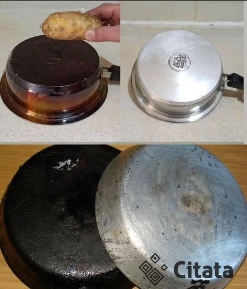 keptuvę. Taip pat, jei norite efektyvesnio būdo, galite ant keptuvės užpilti valgomosios druskos arba sodos ir ant viršaus patrinti bulvę.