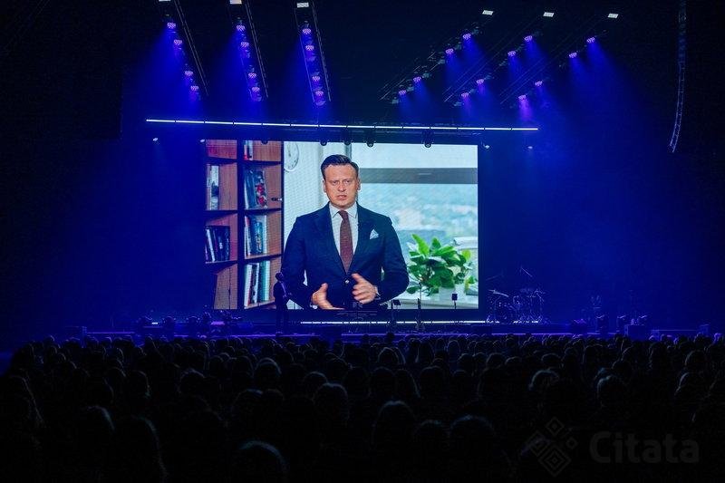 „Twinsbet“ arenoje vykusiame Vilniaus metų mokytojų apdovanojimuose muzikinius sveikinimus sostinės pedagogams skyrė Linas Adomaitis su GospelJonai choru.