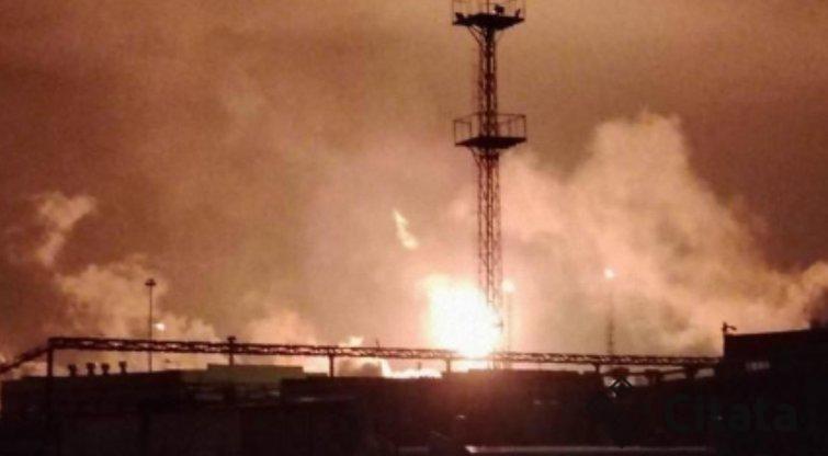 Virš Rusijos naftos perdirbimo gamyklos kilo gaisras