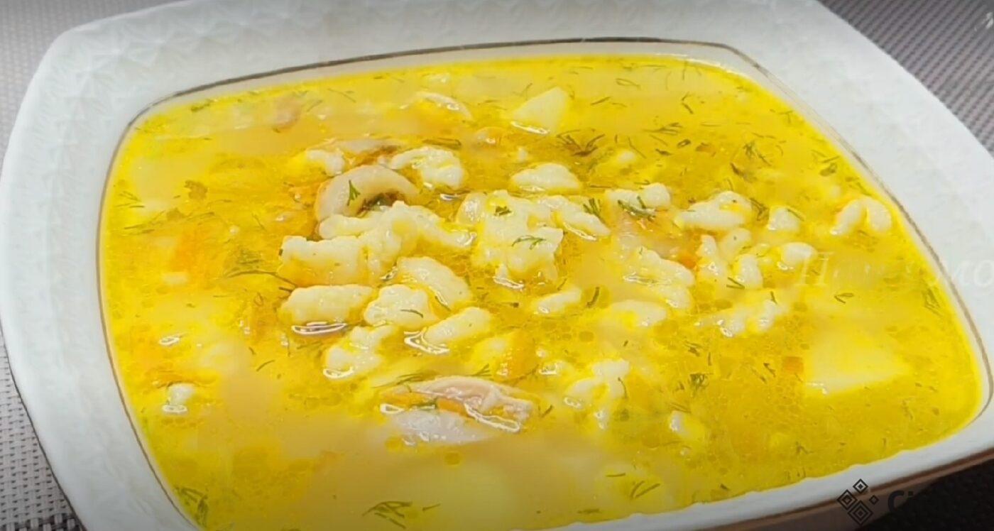 . Miltų mišinį supilkite į sriubą naudodami koldūnų formeles, paviršiuje suformuodami koldūnus. Sriubą su koldūnais virkite dar 5 minutes.