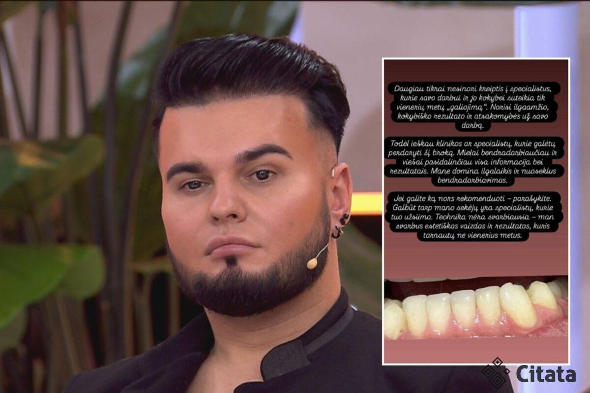 Kur čia garantija? Ar dėl to, kad paslauga buvo suteikta reklamos pagrindu, darbą galima atlikti bet kaip, žinant, jog po metų klientas bus priverstas viską persidaryti už savo lėšas? Noriu pabrėžti – man dantys nebuvo padaryti nemokamai. Mano rekomendacijos ir viešinimas socialinėse erdvėse taip pat turi kainą ir yra įkainoti“, – savo „Instagram“ paskyroje rašė jis.